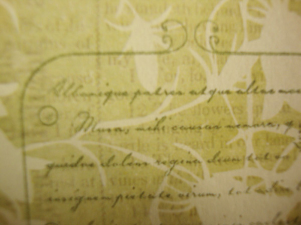Print out your greeting/sentiment on an 8 1/2″ X 11″ sheet of cardstock, repeating the text with enough spacing to allow stamping over the text, but including an extra word on the side.