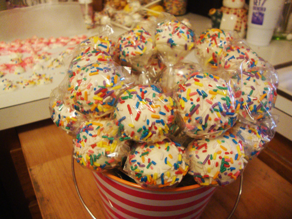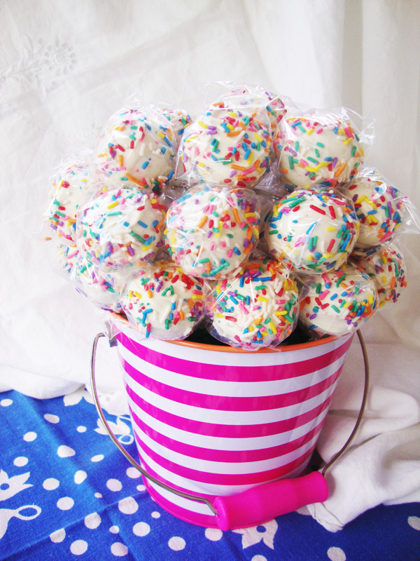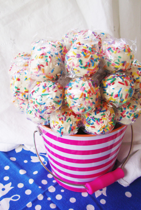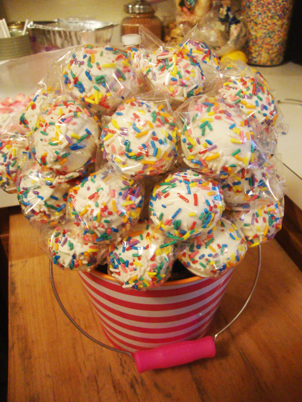 Color always makes me happy! The colorful bucket, the sprinkles…everything about it makes me smile! Since I’m such a fan of cake pops, I’m sure that I’ll be searching for more unique ways of displaying them. Have a Happy New Year!