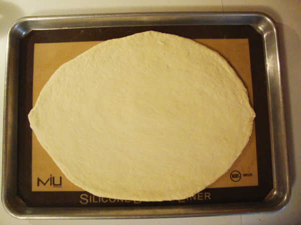 Not only was the liner almost the right size for the dimensions of the crust in the recipe so I had a sort-of guide, but the dough rolled out better, clinging to the liner and it was easy to transfer the liner to the cookie sheet, which I also didn’t need to spray in the first place. That was definitely a win-win!